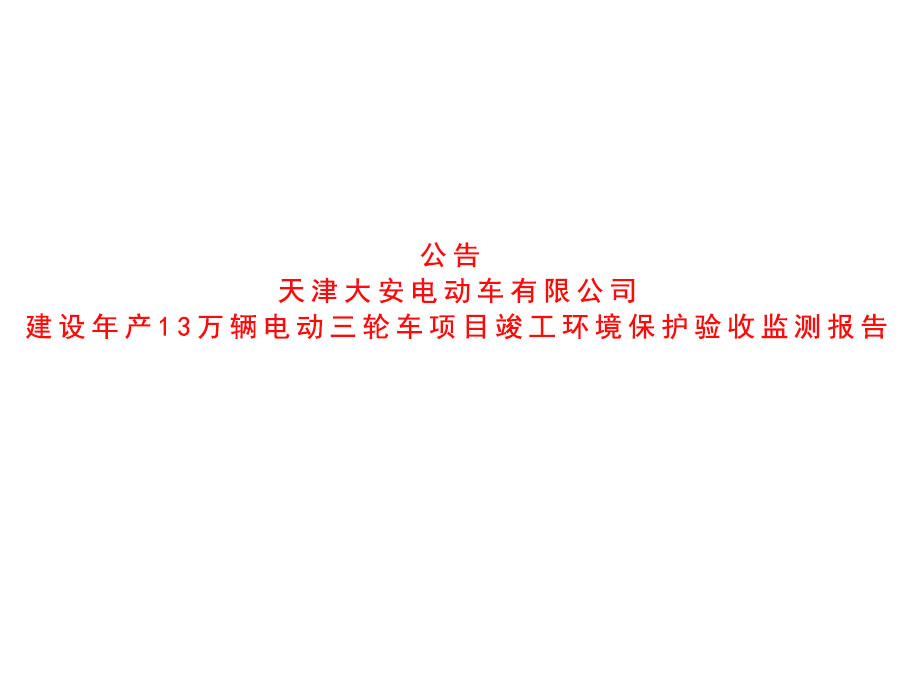 公司動態(tài) 天津大安電動車有限公司建設年產13萬輛電動三輪車項目竣工環(huán)境保護驗收監(jiān)測報告